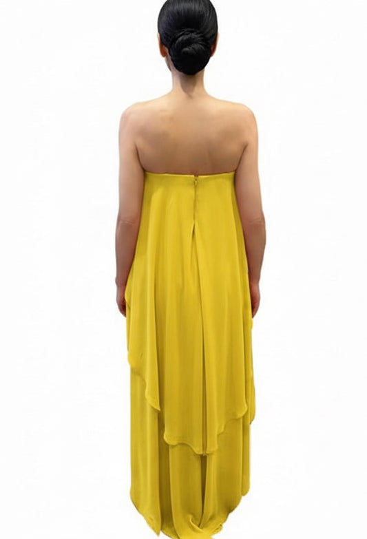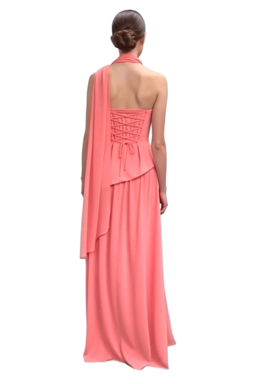 Strapless corset asymetrical peplum dobby slit gown and matching scarf
