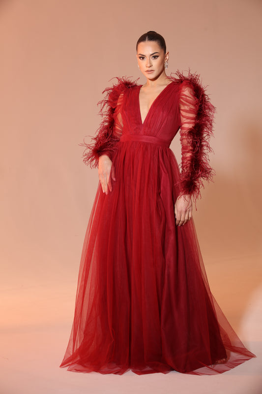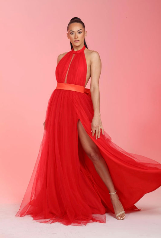 • Indulge in luxury soft tulle criss cross back maxi dress