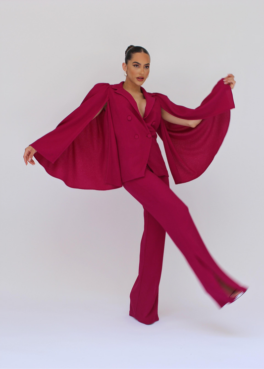 Made for Allure bell sleeve jacket and split pants suit set