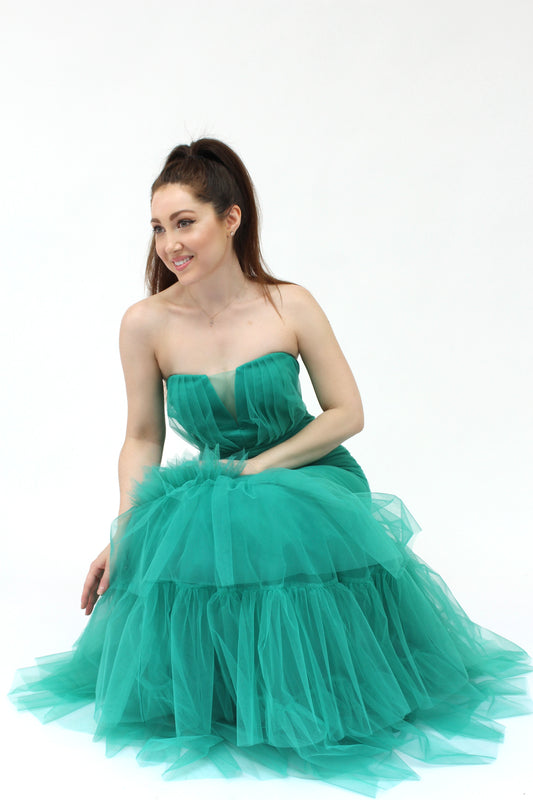 Elegant event flower detail pleated tulle dress