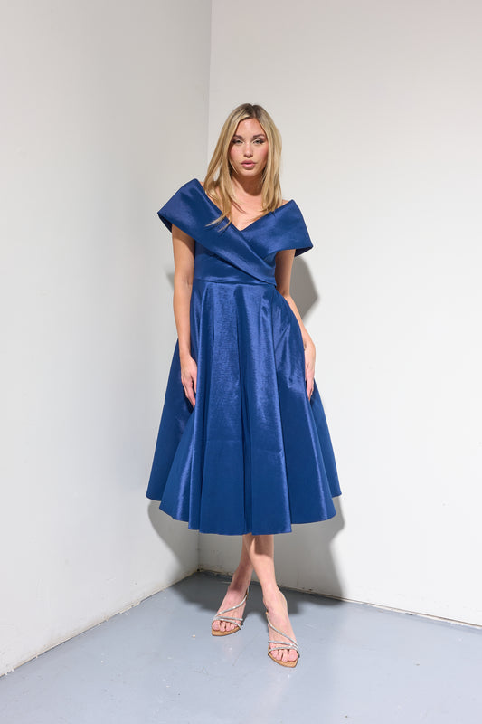 One shoulder bow taffeta jumpsuit-dress w pockets