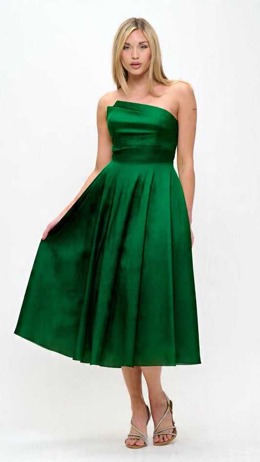 Indulge in luxury taffeta button detail strapless corset gown w pockets