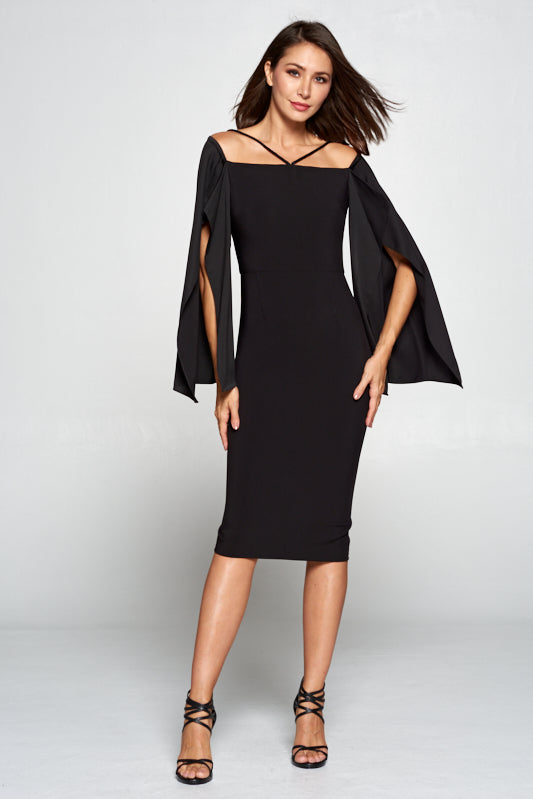 Guest list split sleeve black midi dress