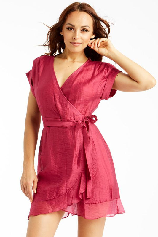 Very berry tencel ruffle mini wrap dress
