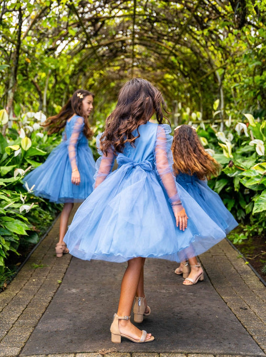 Mommy and Me Collection - Kids tulle long sleeve bow back tie dress