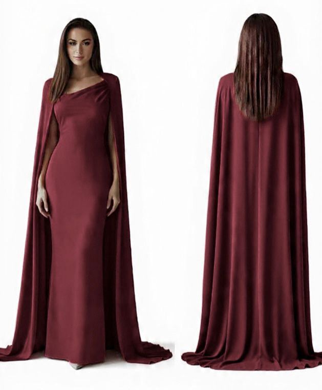 This elegant spaghetti strap gown and draping detachable cape set features an asymmetrical design made with a luxurious satin matte fabric. Perfect for formal events, the cape adds a touch of drama while the matching gown creates a flattering silhouette. Elevate your evening wear collection with this timeless and sophisticated ensemble.