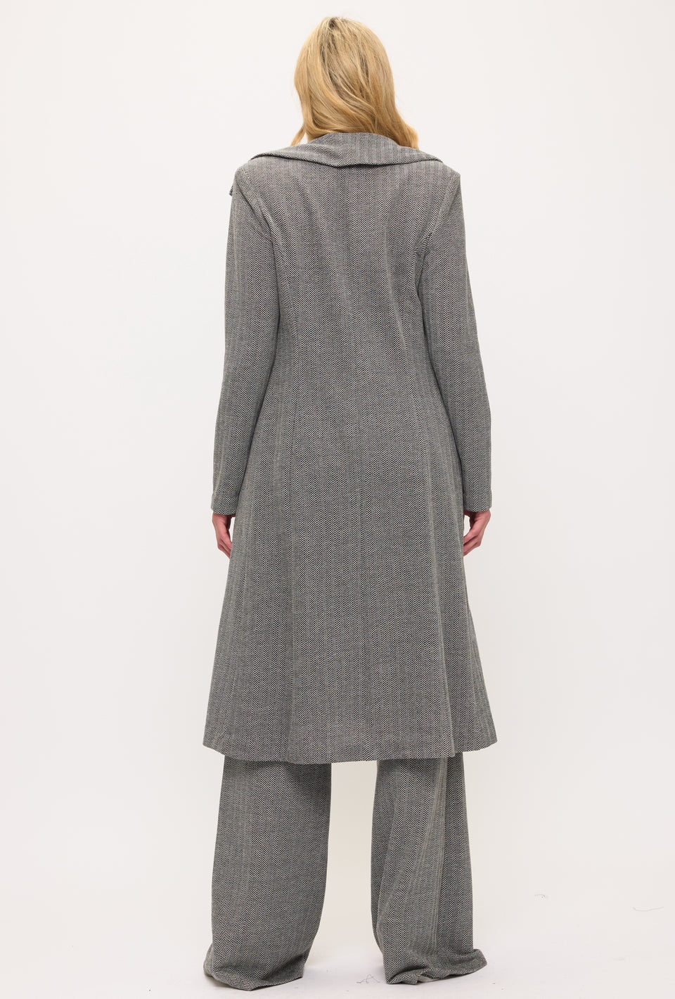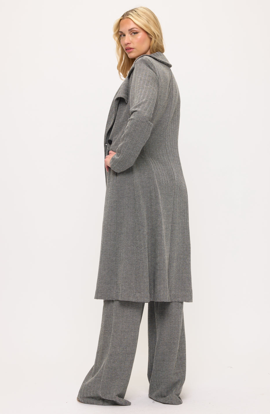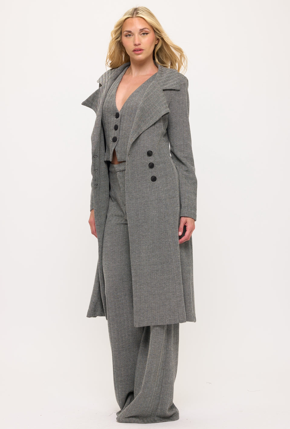 This on-trend, three-piece set features a stylish chevron print on a crop vest top, jacket, and pants. Designed to make a statement, this versatile set can be dressed up or down for any occasion. Perfect for fashion-forward individuals looking to add a unique touch to their wardrobe.