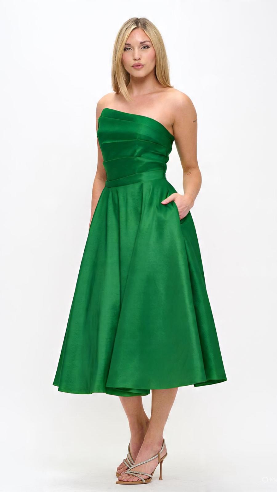 This strapless asymmetrical taffeta tea length dress is perfect for any formal occasion. Made with high-quality taffeta fabric, it is both elegant and comfortable to wear. The strapless design allows for a chic look while the tea length adds a touch of sophistication. Perfect for weddings, prom, or a night out.